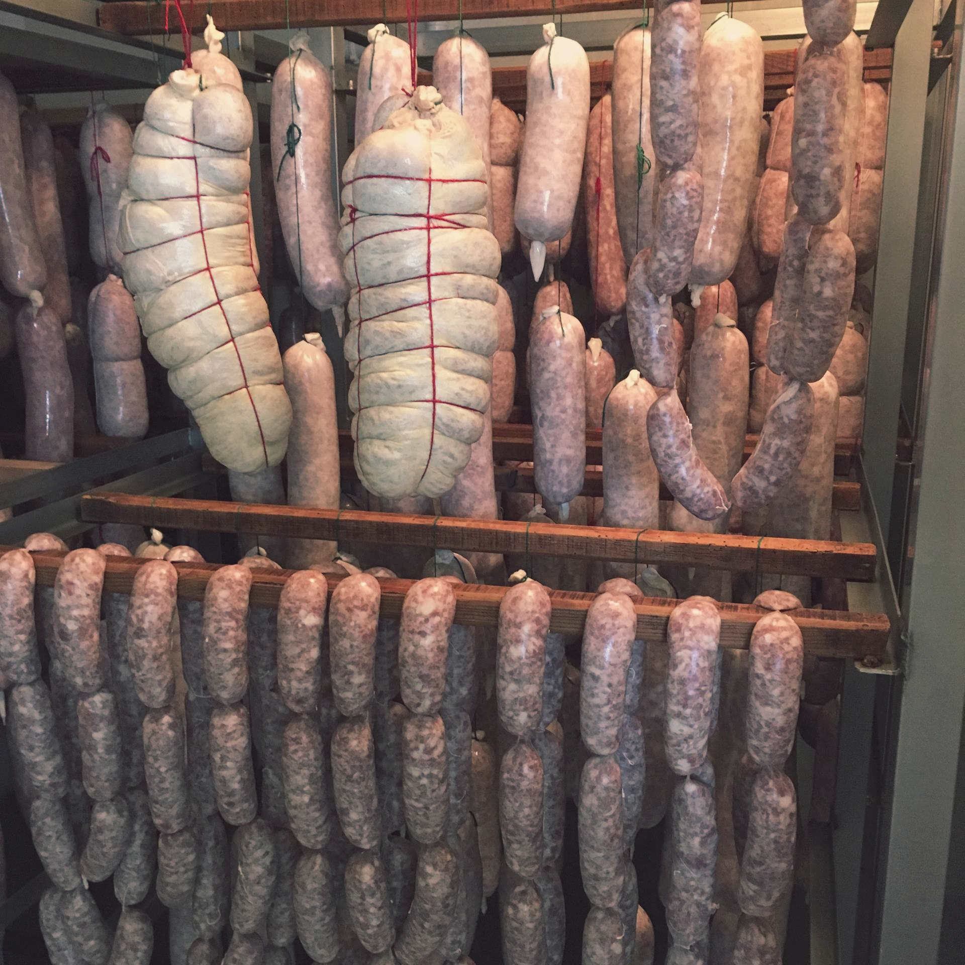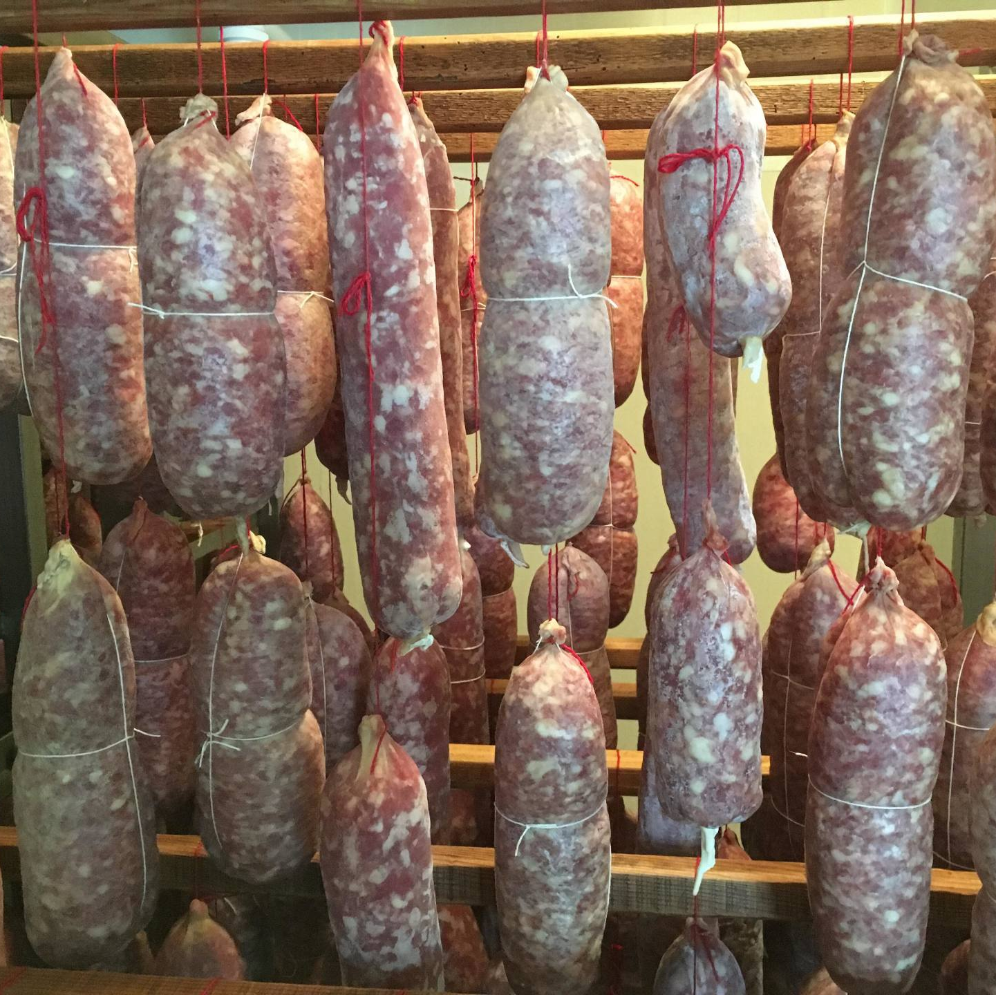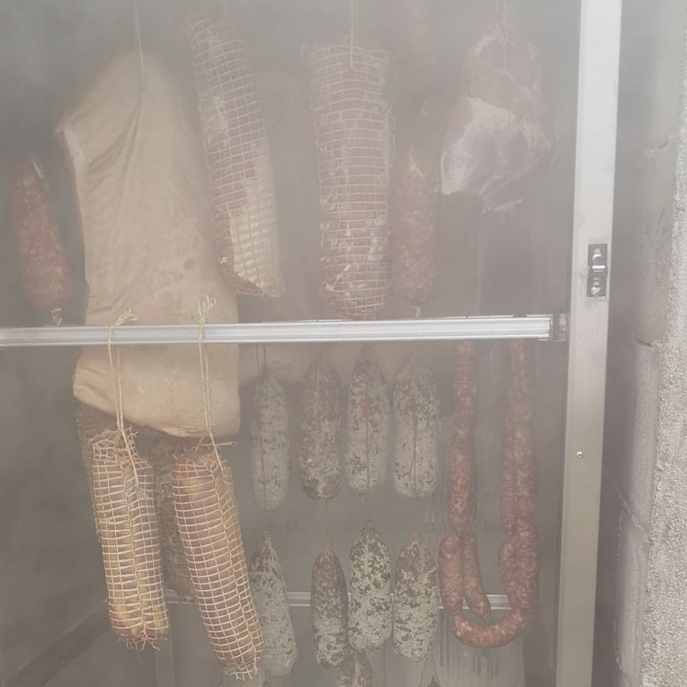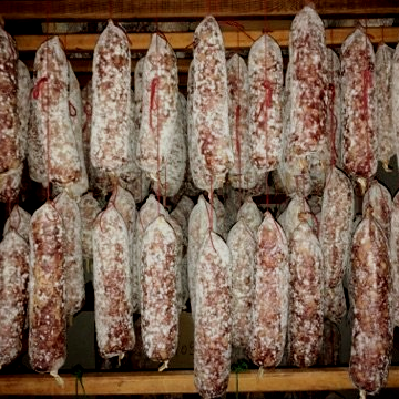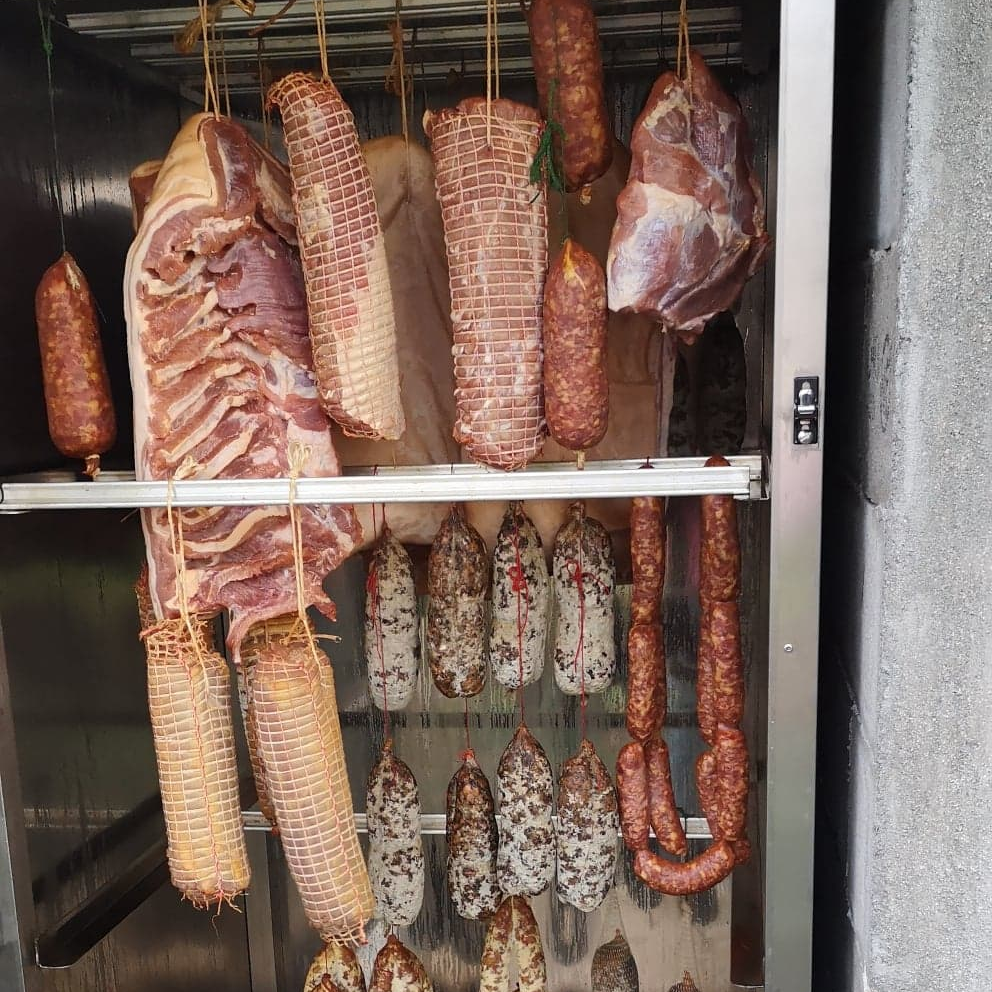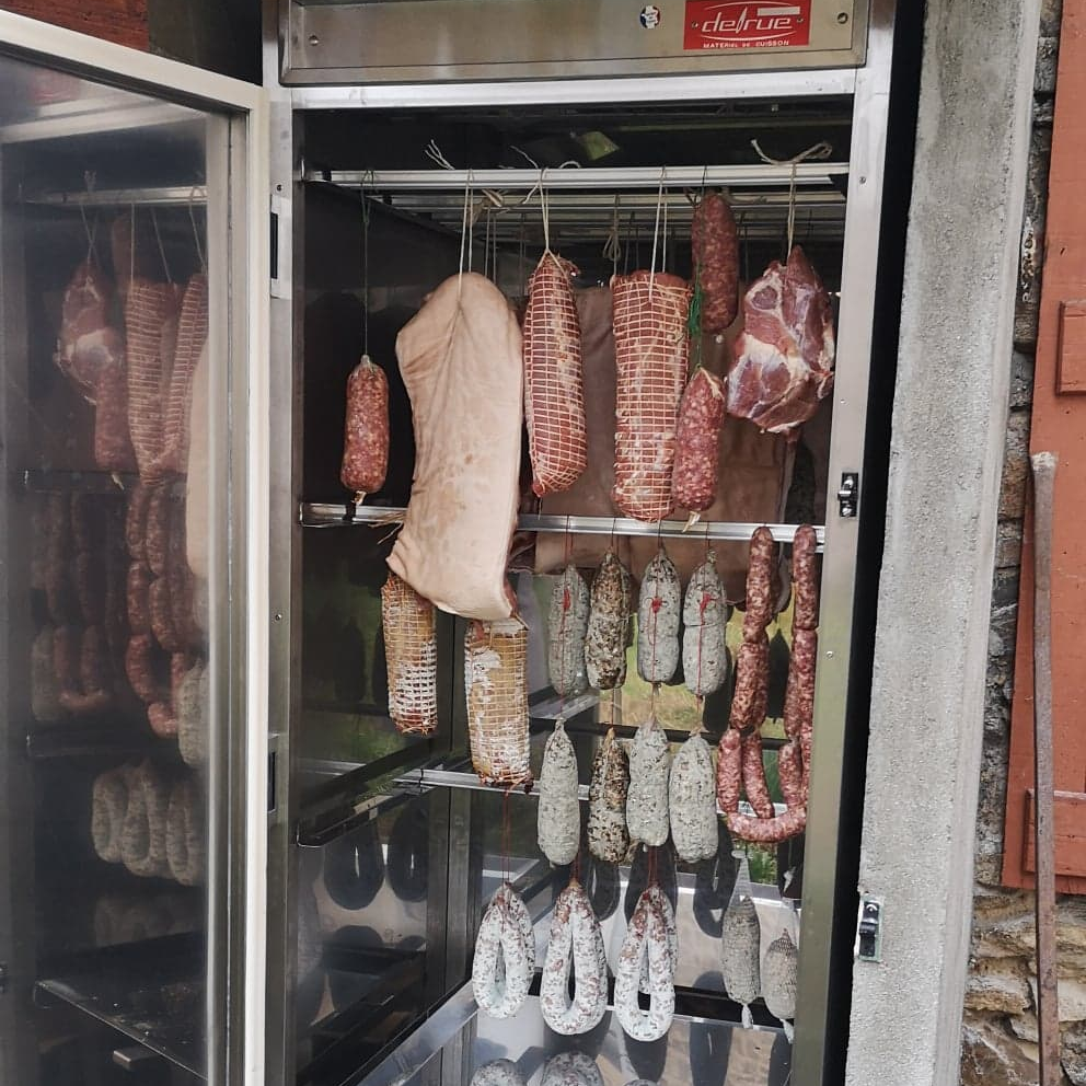 Jésus cuit, jambon sec cuit (dit jambon de batteuse) pâté en croûte, jambon cuit, jambon cru, tête roulée, rôti cuit, poitrine roulée et cornichons